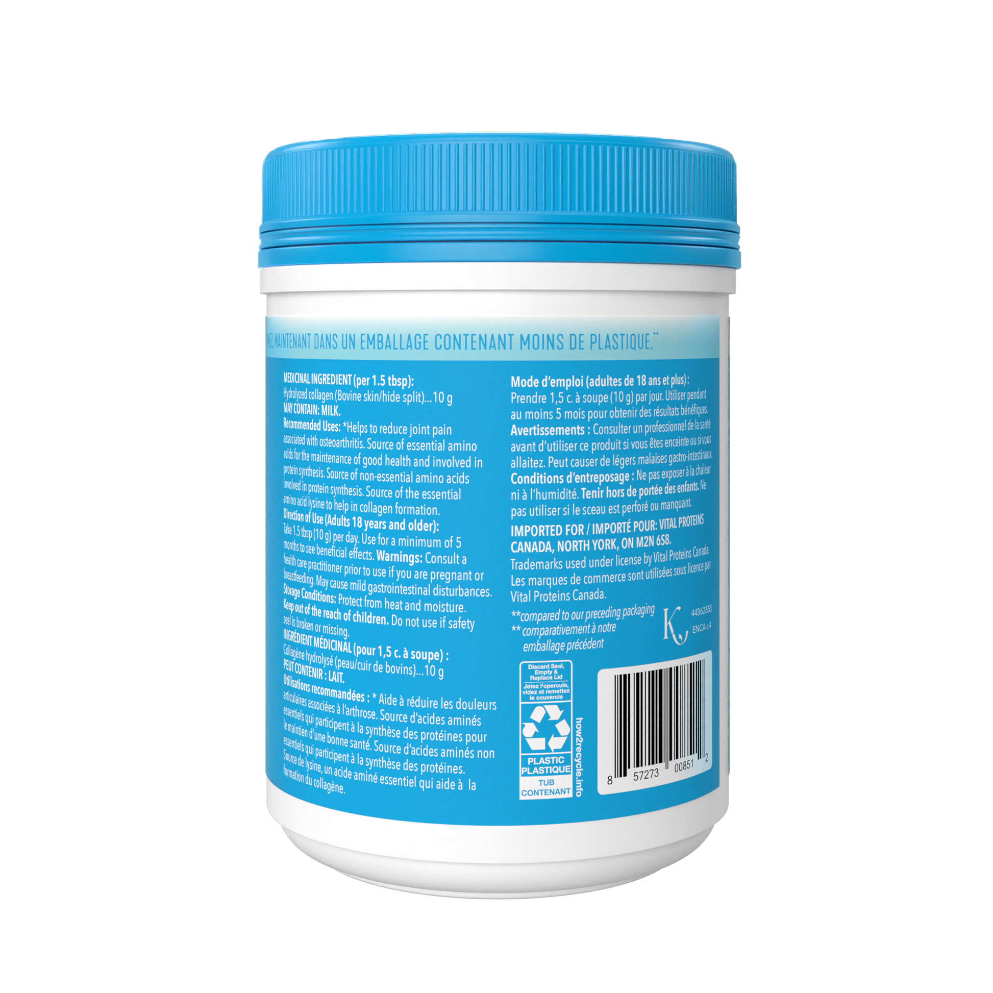 Collagen is found in all of our connective tissues, tendons, ligaments and bones with its purpose being to provide these body parts with their strength, structure and elasticity. Vital Proteins™ Bovine Collagen provides joint support and is a source of essential amino acids which helps to reduce joint pain associated with osteoarthritis and assists in the maintenance of good health and wellness.